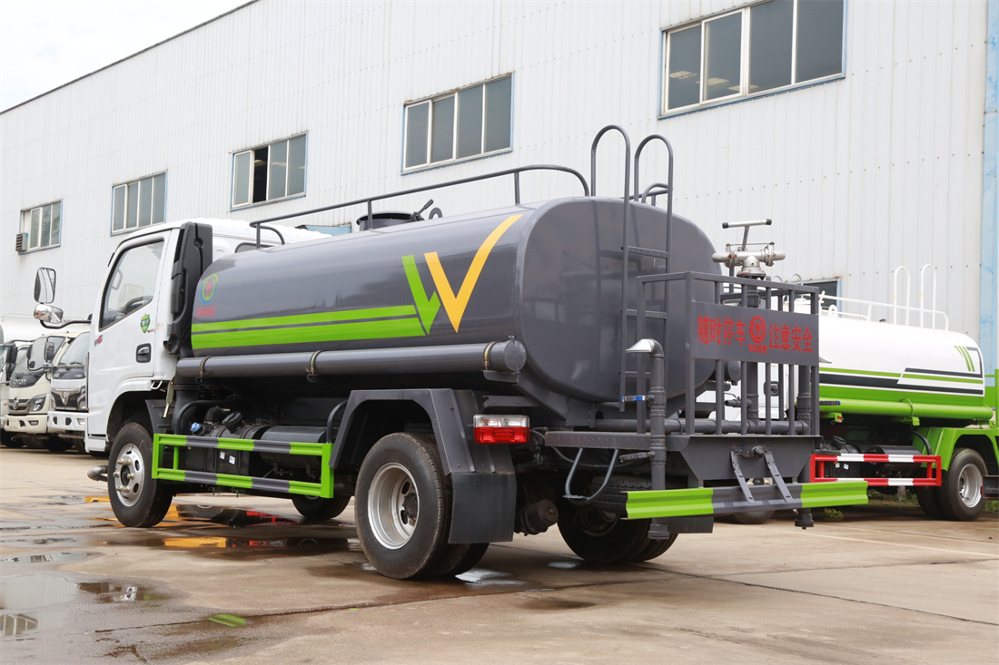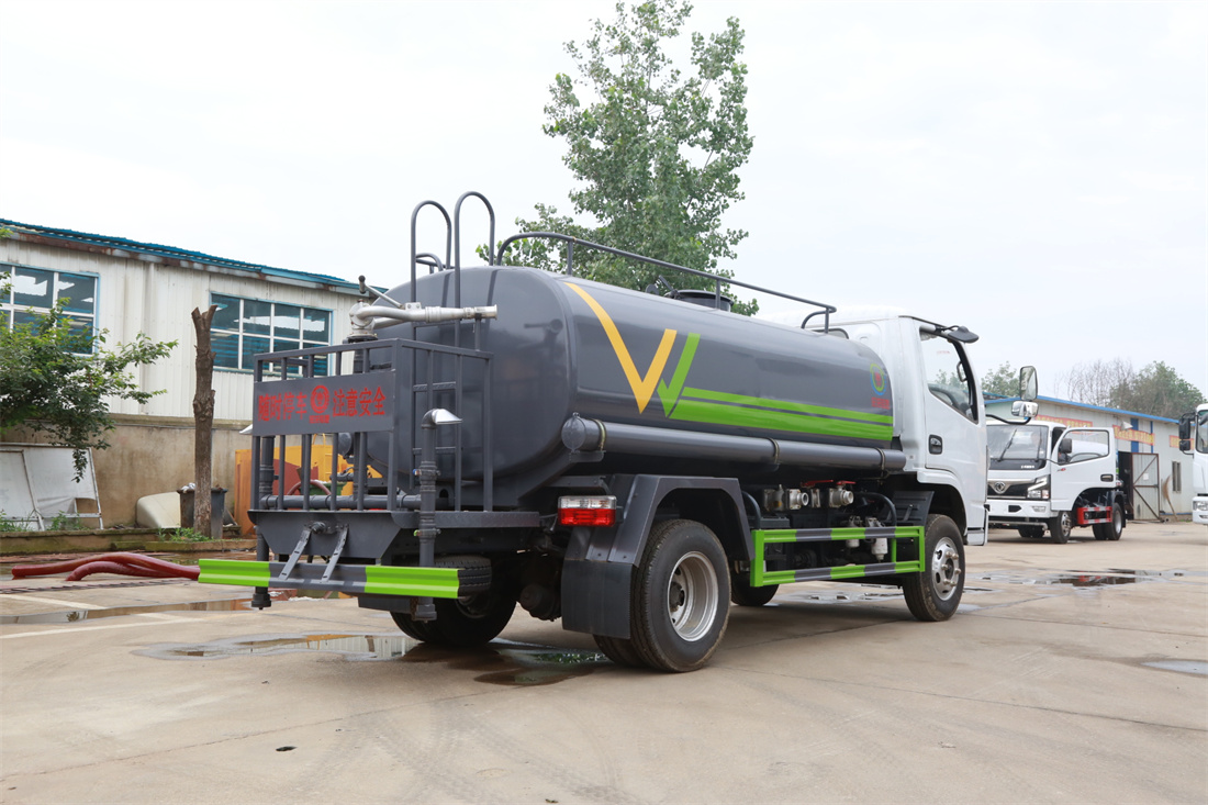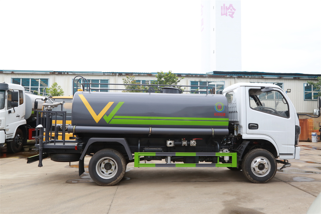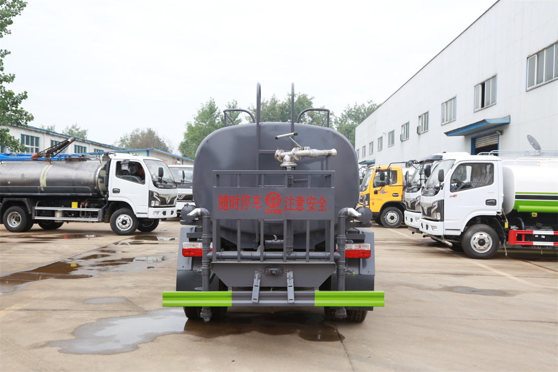 灑水車前裝有鴨形噴嘴或圓頭沖嘴,后面裝有圓柱開灑水噴嘴或蓮蓬頭噴嘴,后部有一工作平臺,裝配有水炮。后部還可裝8個噴嘴(選裝)。
