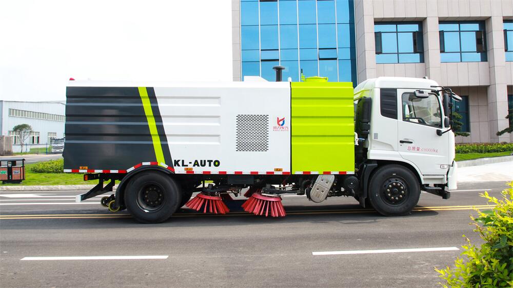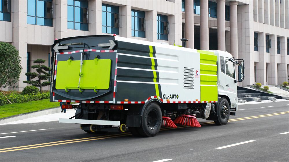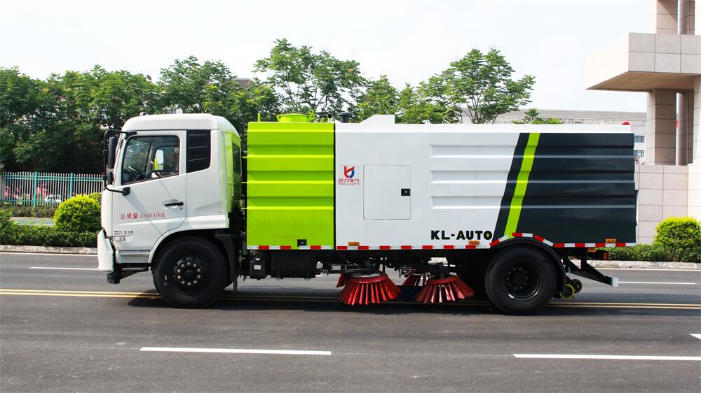 1.采用吸掃混合的方式收集垃圾,濕式除塵、電液,液壓傾翻卸料的作業(yè)方式對路面進行清掃作業(yè)。