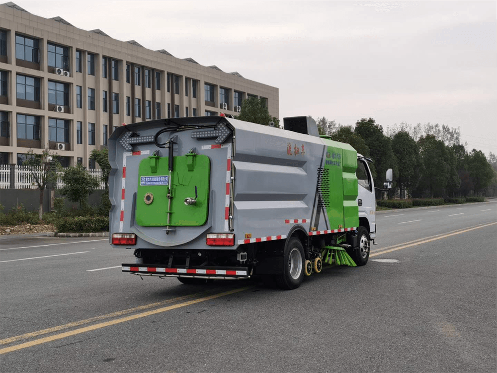 高效洗掃車利用高壓水流及傾斜掃刷將垃圾掃**吸盤前面,在風機產(chǎn)生的負壓作業(yè)下,風流在閉合的回路中將垃圾吸入垃圾箱中貯存,整個作業(yè)過程均是物理原理,不會產(chǎn)生化學(xué)廢料或垃圾外泄對環(huán)境的二次污染,同時,后噴霧的降塵有效的降低了空氣中粉塵濃度,解決粉塵污染問題。