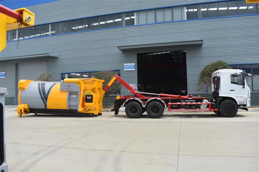 勾臂式垃圾車(車廂可卸式垃圾車)介紹: 車廂可卸式垃圾車又叫拉臂式垃圾車,是一種采用高新設(shè)計(jì)可伸縮的鉤臂,實(shí)現(xiàn)垃圾廂的二次吊裝,自吊上放下,可自行傾倒垃圾的環(huán)衛(wèi)設(shè)備。 拉臂式垃圾車結(jié)構(gòu)簡(jiǎn)單,操作穩(wěn)定方便,裝卸效率高,機(jī)械化程度高,節(jié)省人力。鉤臂垃圾車一車可帶多個(gè)垃圾廂,在裝卸的運(yùn)輸過(guò)程中可有效地避免二次污染。 拉臂垃圾車采用高新設(shè)計(jì)可擺動(dòng)的鉤臂,垃圾箱由框架、開(kāi)啟油缸、滑輪、后門和若干加強(qiáng)框架與鋼板焊接而成。調(diào)換貨廂快捷方便,貨廂上帶蓋(倒垃圾時(shí)可翻開(kāi)),鉤臂垃圾車?yán)鴰w可選用碳鋼、不銹鋼材質(zhì)、內(nèi)部采取環(huán)氧樹(shù)脂防腐處理,改裝部分與原車底盤為可分離式,維修方便且保持了原車的機(jī)動(dòng)性及行駛性能。