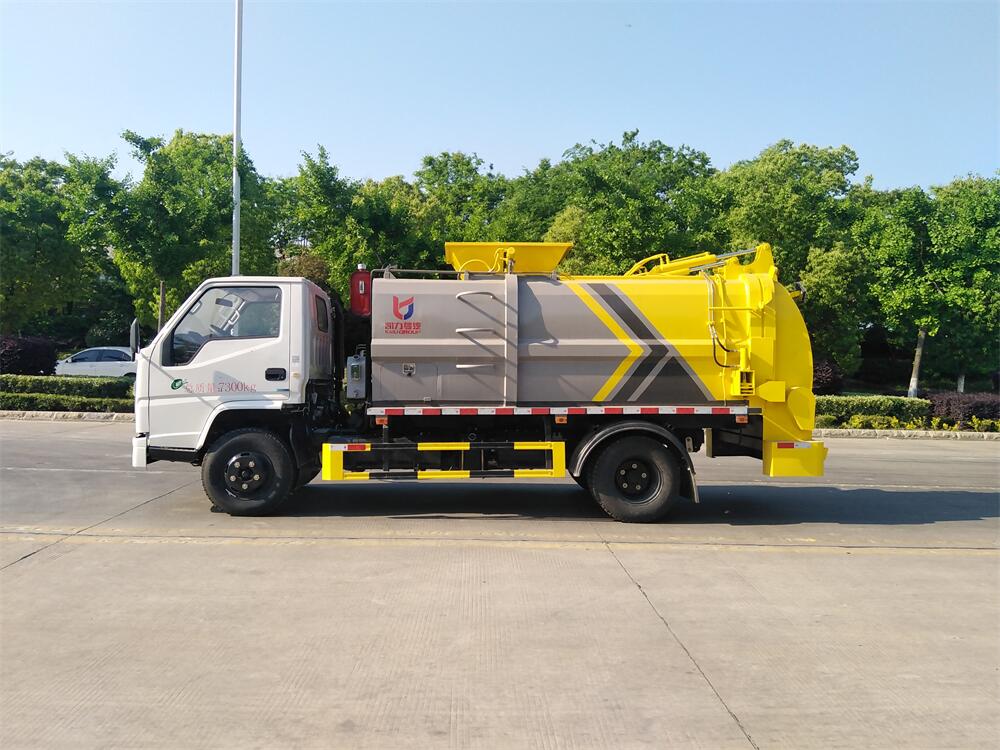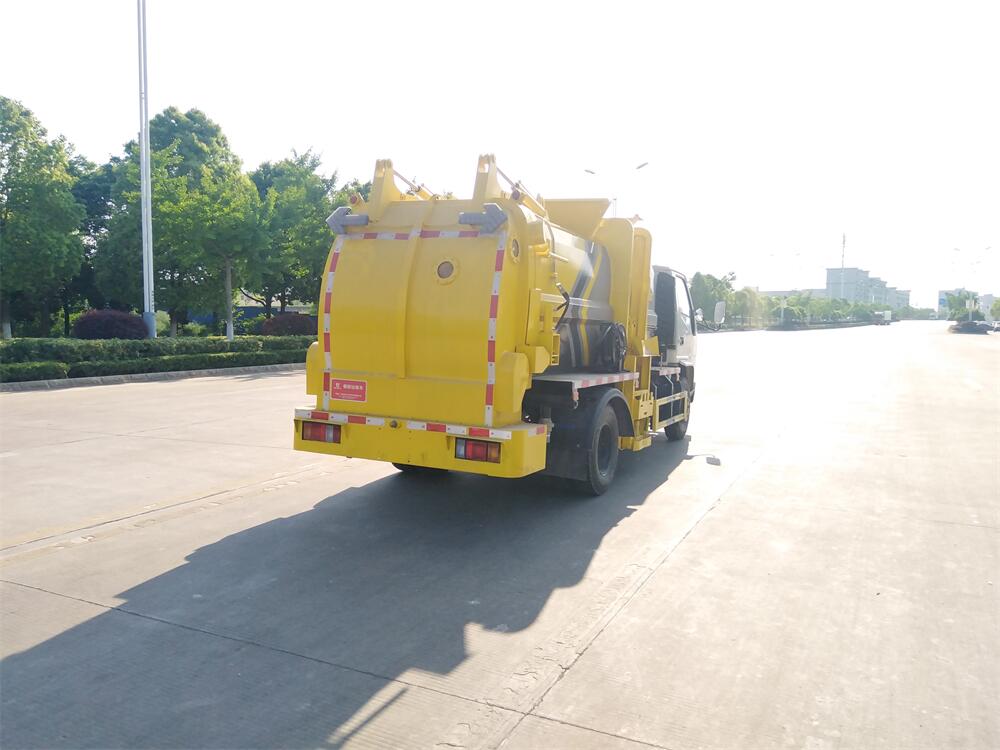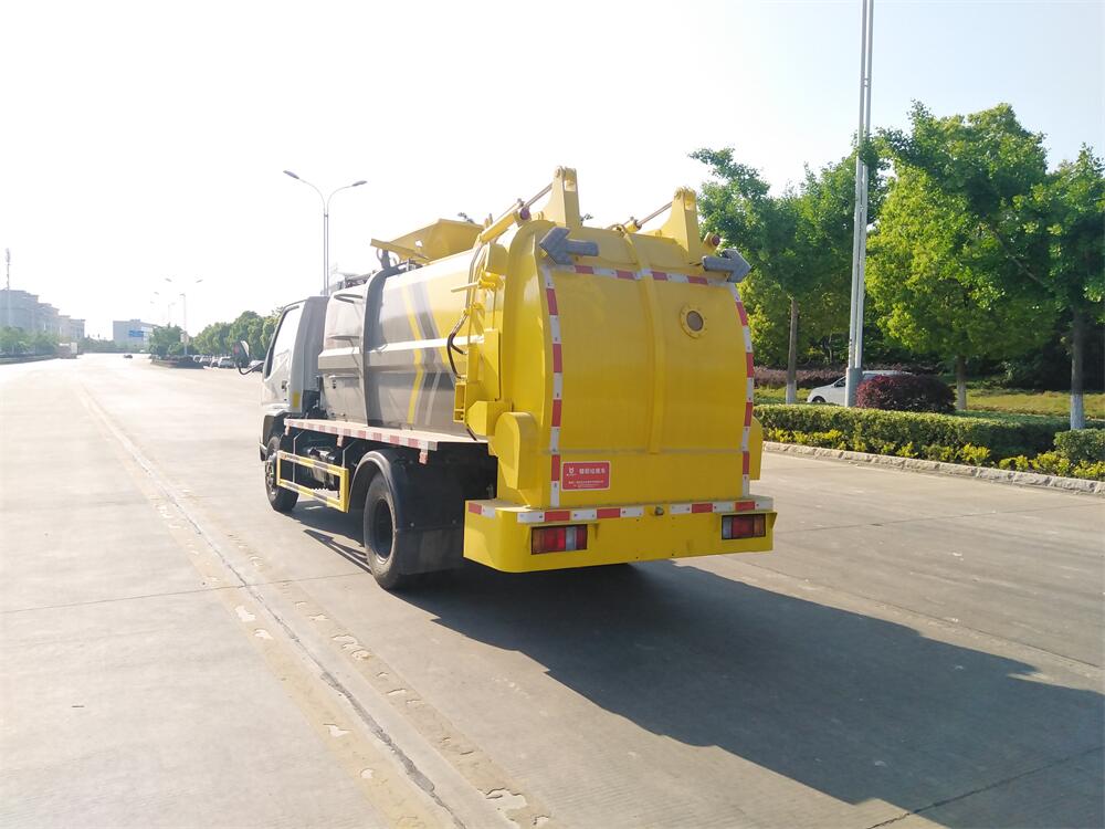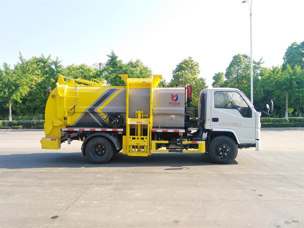 上裝配置:罐體容積6m3,配備120L/240L掛桶提升翻轉(zhuǎn)機(jī)構(gòu),液壓系統(tǒng),后蓋液壓鎖緊開啟,罐體可以舉升自卸,尾部帶自流閥;用于運(yùn)輸液態(tài)垃圾,其特點(diǎn)操作簡(jiǎn)單,密封性好,無泄漏,無異味;可選裝固液分離功能,推板擠壓功能,常用于餐館的垃圾轉(zhuǎn)運(yùn)處理。