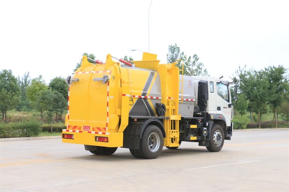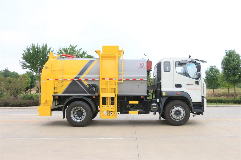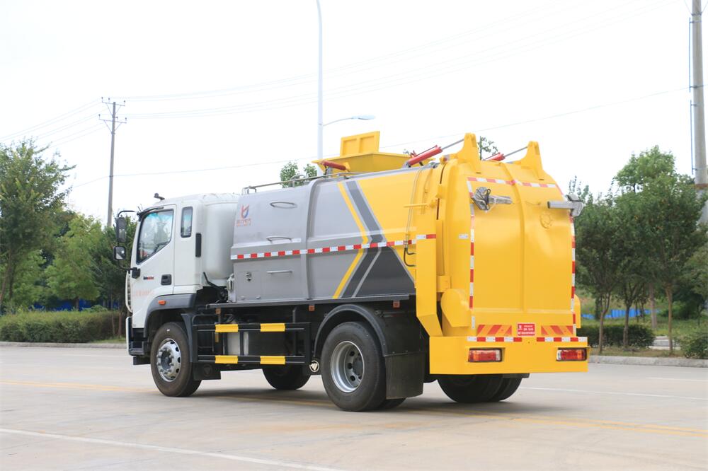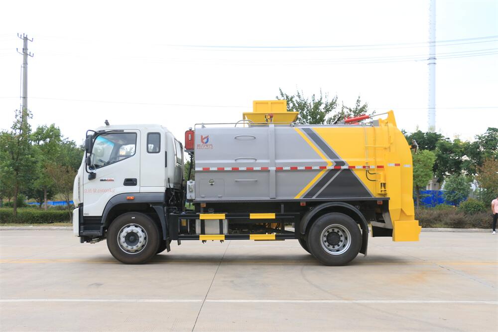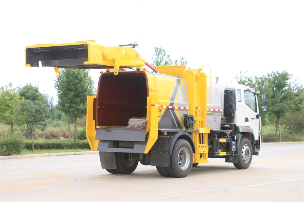 上裝配置:罐體容積10m3,配備120L/240L掛桶提升翻轉(zhuǎn)機(jī)構(gòu),液壓系統(tǒng),后蓋液壓鎖緊開啟,罐體可以舉升自卸,尾部帶自流閥;用于運(yùn)輸液態(tài)垃圾,其特點(diǎn)操作簡(jiǎn)單,密封性好,無泄漏,無異味;可選裝固液分離功能,推板擠壓功能,常用于餐館的垃圾轉(zhuǎn)運(yùn)處理。