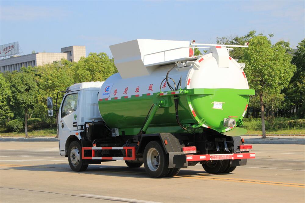 上裝配置:罐體容積8m3,配備120L/240L掛桶提升翻轉(zhuǎn)機構,液壓系統(tǒng),后蓋液壓鎖緊開啟,罐體可以舉升自卸,尾部帶自流閥;用于運輸液態(tài)垃圾,其特點操作簡單,密封性好,無泄漏,無異味;可選裝固液分離功能,推板擠壓功能,常用于餐館的垃圾轉(zhuǎn)運處理。