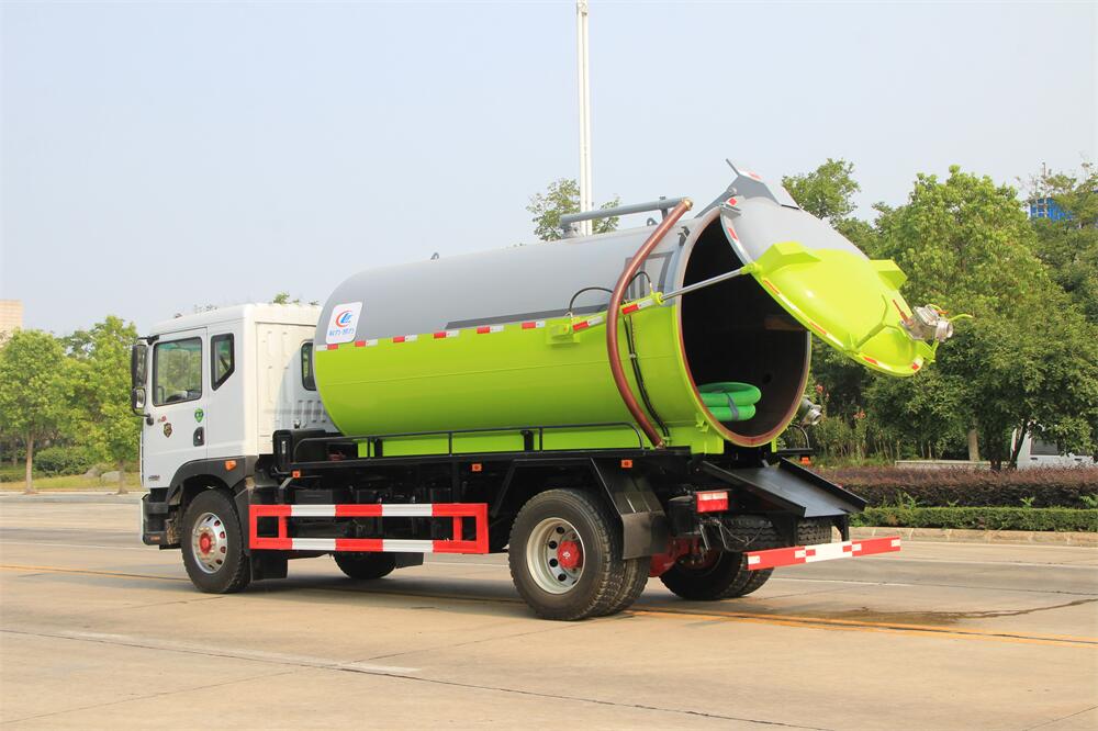 5.液壓舉升自卸功能,便于將各種污物傾倒干凈,后罐門可以液壓?jiǎn)?dòng)開啟,便于清理罐體內(nèi)的沉積物,凝固物及對(duì)罐體內(nèi)部進(jìn)行維修、保養(yǎng),液壓取力增強(qiáng)了系統(tǒng)的穩(wěn)定性。