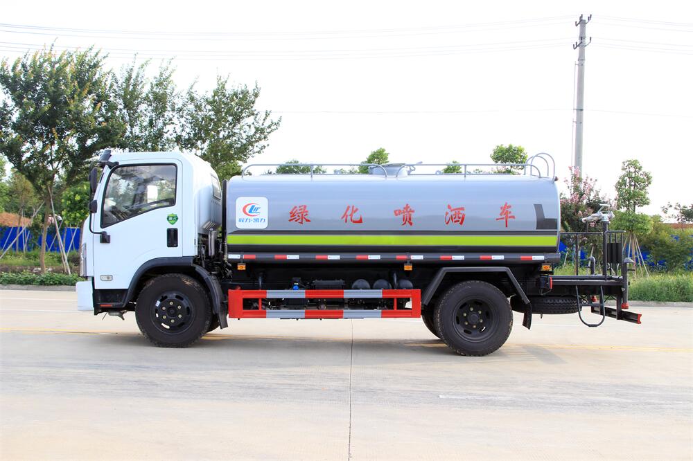 灑水車性能特點(diǎn):前沖(噴)后灑,帶側(cè)噴,罐體后帶工作平臺(tái),平臺(tái)上安裝綠化灑水炮,灑水炮可360旋轉(zhuǎn),可連續(xù)調(diào)成直沖狀、大雨、小雨、毛毛雨,帶安全護(hù)欄,配備全國(guó)質(zhì)量評(píng)比**名的杭州威龍大功率專用 灑水泵,泵可自吸自排,安裝過(guò)濾網(wǎng),帶消防接口,可通過(guò)消防栓進(jìn)水,帶自流閥,隨車選裝20米綠化卷盤,可噴灑農(nóng)藥。