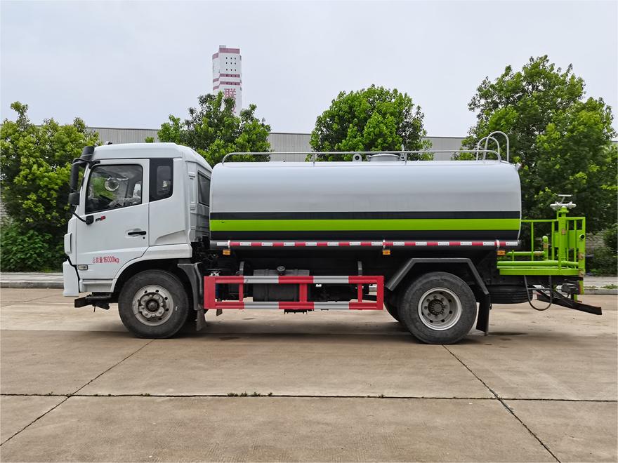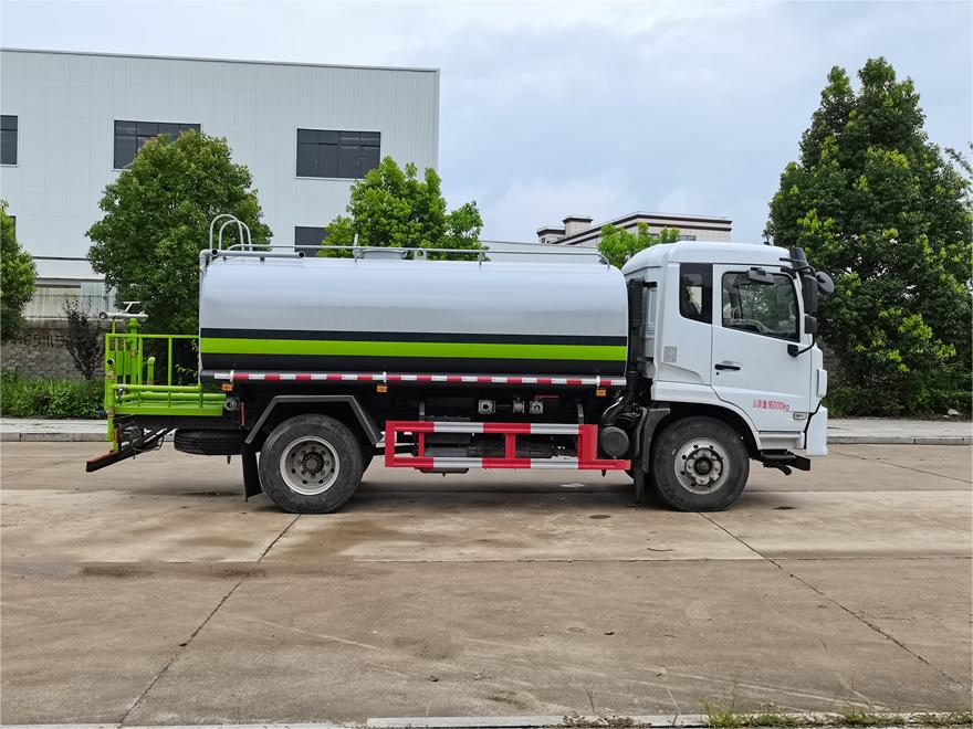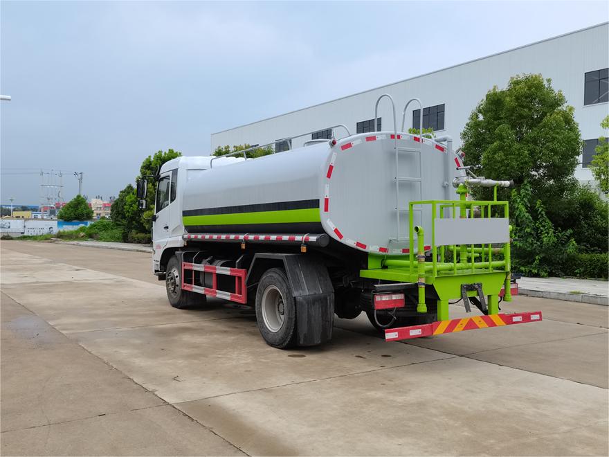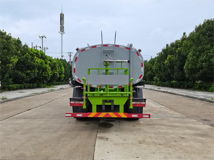 灑水車前裝有鴨形噴嘴或圓頭沖嘴,后面裝有圓柱開灑水噴嘴或蓮蓬頭噴嘴,后部有一工作平臺,裝配有水炮。后部還可裝8個噴嘴(選裝)。