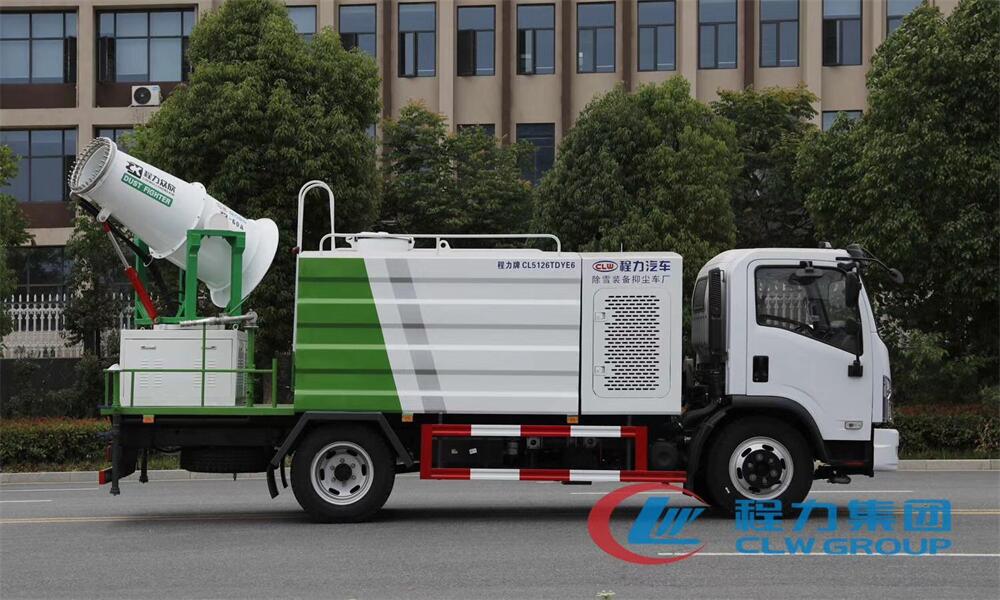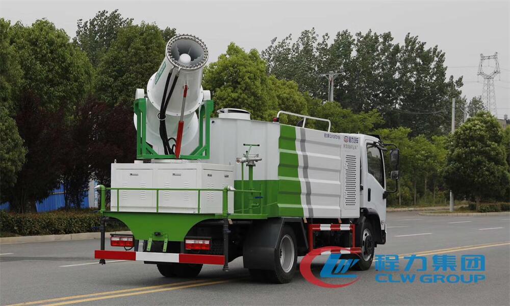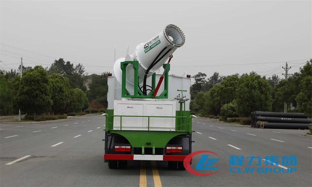 上裝配置:罐體容積為 8立方,選配風(fēng)送式霧炮機(jī)組射程30米、40米、50米、60米、80米、100米、120米霧炮,罐體鋼板為4mm碳鋼Q235材質(zhì),罐內(nèi)隔板具有防波作用,以減輕汽車行駛時(shí)罐體液體沖擊,罐體及整車外形尺寸按照公告。帶大功率專用灑水泵,泵可自吸自排,整車前沖、后灑、側(cè)噴、帶65消防接口,后平臺(tái)配CLW-50、CLW-60、CLW-80、CLW-100、CLW-120型風(fēng)送式霧炮機(jī)組;罐體前封頭配大功率柴油發(fā)電機(jī)組;前封頭帶水位計(jì),后平臺(tái)主管路帶1寸澆花接口,后爬梯。帶兩根輸水管及陰陽端。罐體顏色:銀/灰/綠,罐體兩側(cè)噴“多功能抑塵車”字樣,貼反光標(biāo)示。
