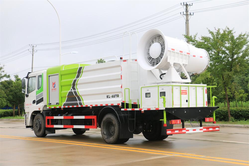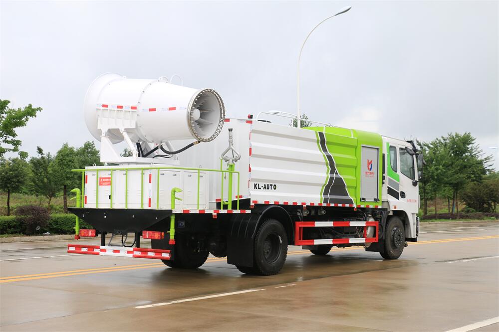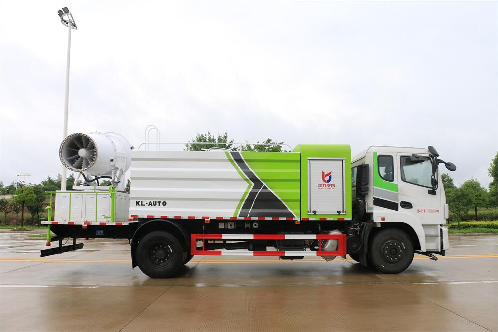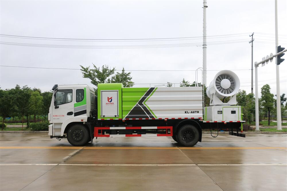 上裝配置:罐體容積為 12立方,選配風(fēng)送式霧炮機組射程30米、40米、50米、60米、80米、100米、120米霧炮,罐體鋼板為4mm碳鋼Q235材質(zhì),罐內(nèi)隔板具有防波作用,以減輕汽車行駛時罐體液體沖擊,罐體及整車外形尺寸按照公告。帶大功率專用灑水泵,泵可自吸自排,整車前沖、后灑、側(cè)噴、帶65消防接口,后平臺配CLW-50、CLW-60、CLW-80、CLW-100、CLW-120型風(fēng)送式霧炮機組;罐體前封頭配大功率柴油發(fā)電機組;前封頭帶水位計,后平臺主管路帶1寸澆花接口,后爬梯。帶兩根輸水管及陰陽端。罐體顏色:銀/灰/綠,罐體兩側(cè)噴“多功能抑塵車”字樣,貼反光標(biāo)示。