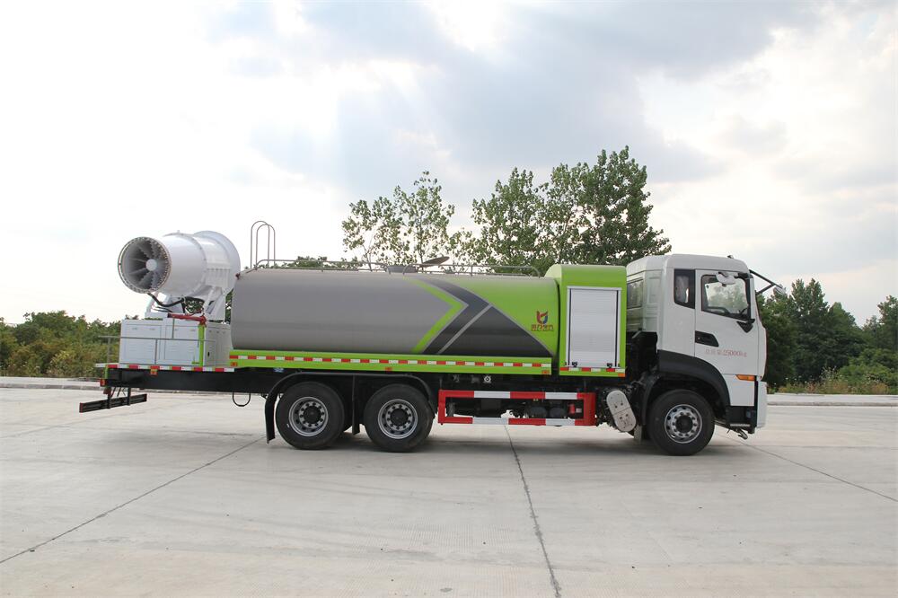 上裝配置:罐體容積為 16立方,選配風(fēng)送式霧炮機(jī)組射程30米、40米、50米、60米、80米、100米、120米霧炮,罐體鋼板為4mm碳鋼Q235材質(zhì),罐內(nèi)隔板具有防波作用,以減輕汽車行駛時(shí)罐體液體沖擊,罐體及整車外形尺寸按照公告。帶大功率專用灑水泵,泵可自吸自排,整車前沖、后灑、側(cè)噴、帶65消防接口,后平臺(tái)配CLW-50、CLW-60、CLW-80、CLW-100、CLW-120型風(fēng)送式霧炮機(jī)組;罐體前封頭配大功率柴油發(fā)電機(jī)組;前封頭帶水位計(jì),后平臺(tái)主管路帶1寸澆花接口,后爬梯。帶兩根輸水管及陰陽(yáng)端。罐體顏色:銀/灰/綠,罐體兩側(cè)噴“多功能抑塵車”字樣,貼反光標(biāo)示。