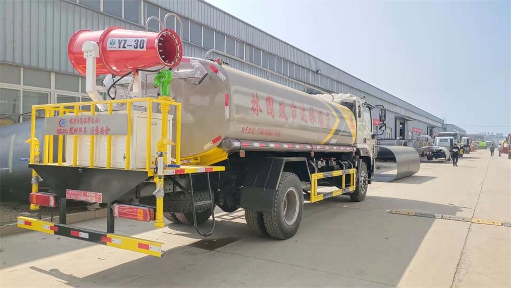 上裝配置:罐體容積 12立方,風送式霧炮機組30米,40米選擇,罐體采用國標Q235碳鋼材質,罐體厚度4MM,前后封頭5MM加厚型,罐體內雙層隔板具有防波蕩作用,以減輕汽車行駛時罐內液體沖擊;灑水車整車及外形尺寸嚴格按照**機動車公告制作而成;裝配大功率專用灑水泵,前沖、后灑、側噴、后平臺帶綠化灑水炮,灑水炮可全方位旋轉,可連續調成直沖狀、大雨、小雨、毛毛雨;配消防接口,自流閥,濾網,帶自吸自排功能。前封頭帶水位計,后平臺主管路帶1寸澆花接口,后爬梯,帶1個消防接頭,帶1個自流閥,1個過濾裝置,其余標配。