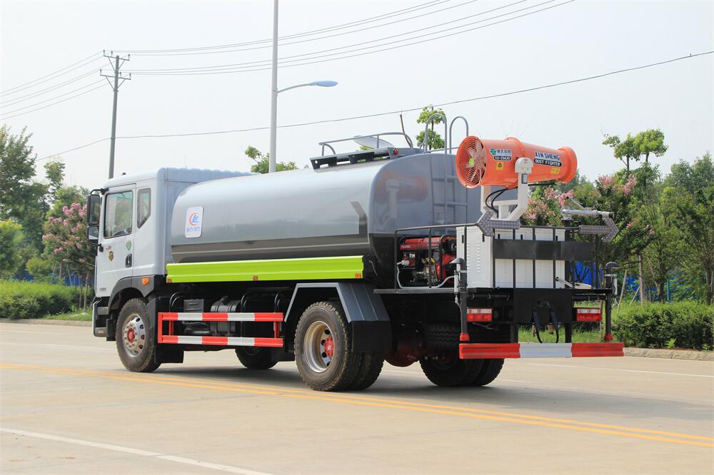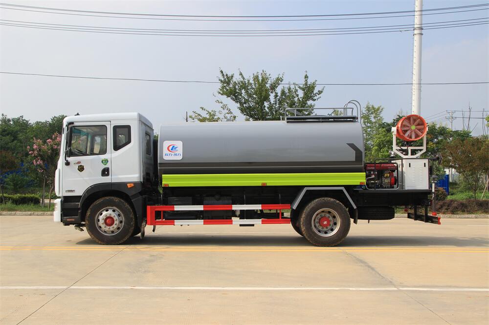 上裝配置:罐體容積 12-15立方,風送式霧炮機組30米,40米選擇,罐體采用國標Q235碳鋼材質(zhì),罐體厚度4MM,前后封頭5MM加厚型,罐體內(nèi)雙層隔板具有防波蕩作用,以減輕汽車行駛時罐內(nèi)液體沖擊;灑水車整車及外形尺寸嚴格按照**機動車公告制作而成;裝配大功率專用灑水泵,前沖、后灑、側(cè)噴、后平臺帶綠化灑水炮,灑水炮可全方位旋轉(zhuǎn),可連續(xù)調(diào)成直沖狀、大雨、小雨、毛毛雨;配消防接口,自流閥,濾網(wǎng),帶自吸自排功能。前封頭帶水位計,后平臺主管路帶1寸澆花接口,后爬梯,帶1個消防接頭,帶1個自流閥,1個過濾裝置,其余標配。