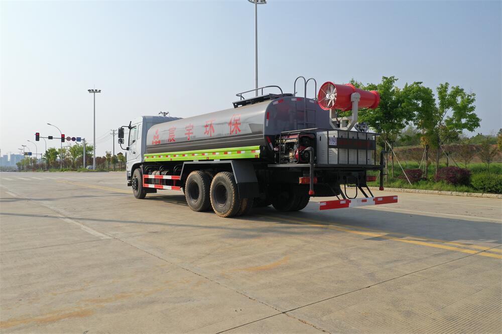上裝配置:罐體容積 18-20立方,風(fēng)送式霧炮機(jī)組30米,40米選擇,罐體采用國標(biāo)Q235碳鋼材質(zhì),罐體厚度4MM,前后封頭5MM加厚型,罐體內(nèi)雙層隔板具有防波蕩作用,以減輕汽車行駛時罐內(nèi)液體沖擊;灑水車整車及外形尺寸嚴(yán)格按照**機(jī)動車公告制作而成;裝配大功率專用灑水泵,前沖、后灑、側(cè)噴、后平臺帶綠化灑水炮,灑水炮可全方位旋轉(zhuǎn),可連續(xù)調(diào)成直沖狀、大雨、小雨、毛毛雨;配消防接口,自流閥,濾網(wǎng),帶自吸自排功能。前封頭帶水位計,后平臺主管路帶1寸澆花接口,后爬梯,帶1個消防接頭,帶1個自流閥,1個過濾裝置,其余標(biāo)配。