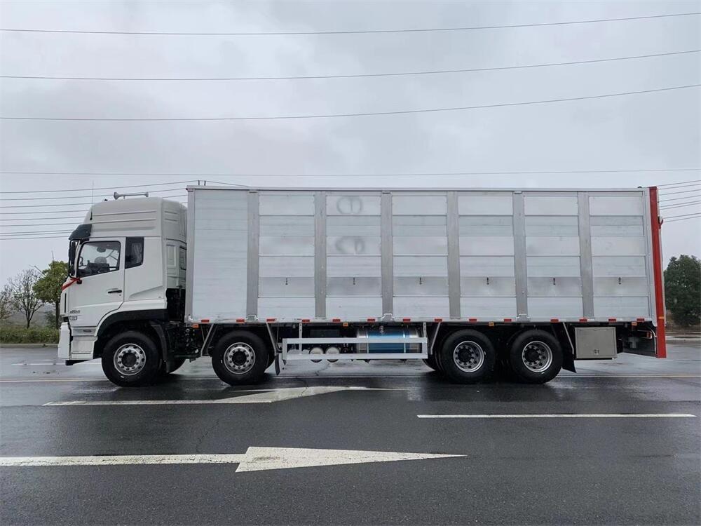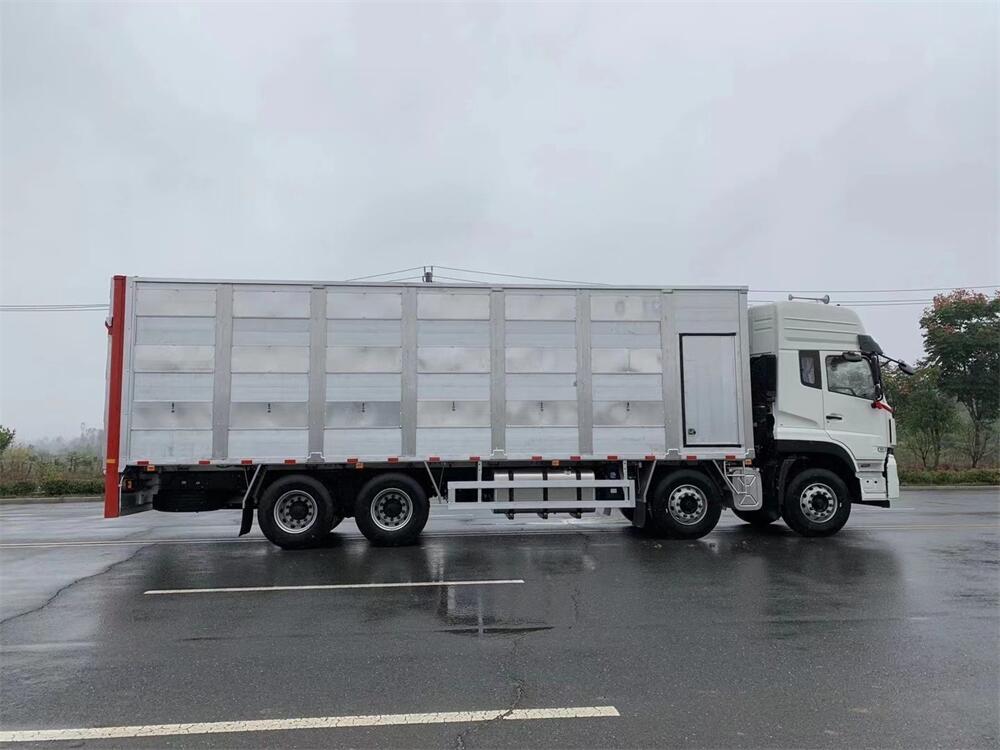 總質量31噸,整備質量15.5噸,額定載質量15.3噸,整車長度11.8-12米,寬度2.5-2.55米,高度3.9-3.98米,貨箱長度8.3-9.3米,箱體鋁合金制作,上中下三層,帶噴淋,喂食功能,可開關側窗,高轉速防風通風換氣扇。后部帶液壓升降尾板,可遠程**。副車架部分采用高強度鋼,能更好應對顛簸路面。帶一套備用發電機。配備冷暖空調,采用全新通風設計,保證前后溫度一致??諝馇逍?,恒溫,有效保證畜禽成活率。設計合理,堅固耐用,箱體內部清洗方便,無死角,無夾縫。讓消毒更徹底。