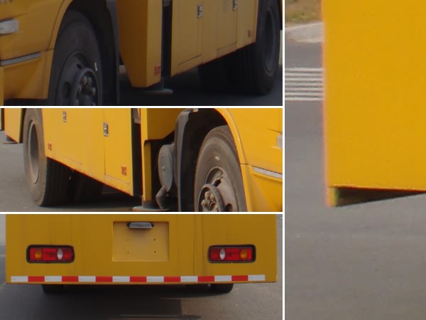 隨底盤選裝駕駛室;前伸540mm,后伸320mm;僅采用底盤5000mm軸距;ABS型號:3631010-C2000,生產廠家:東科克諾爾商用車制動系統(十堰)有限公司;側面防護及后下部防護裝置材料材質:Q235,側面防護及后下部防護裝置為整體式結構;后下部防護裝置離地高度:500mm.