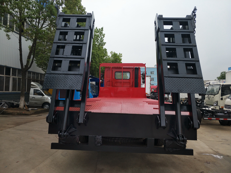 上裝采用八毫米花紋鋼板,120套100方管做橫梁,加強雙簧爬梯,可拉25噸以下挖機。
