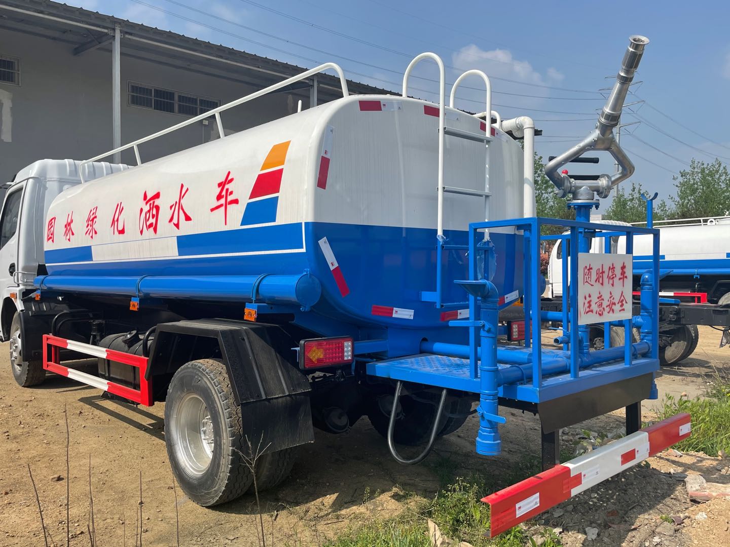 灑水功能:40/50灑水車(chē)專(zhuān)用水泵,前沖、后灑、側(cè)噴、高位花灑、后置工作平臺(tái)帶綠化水炮,射程25米。